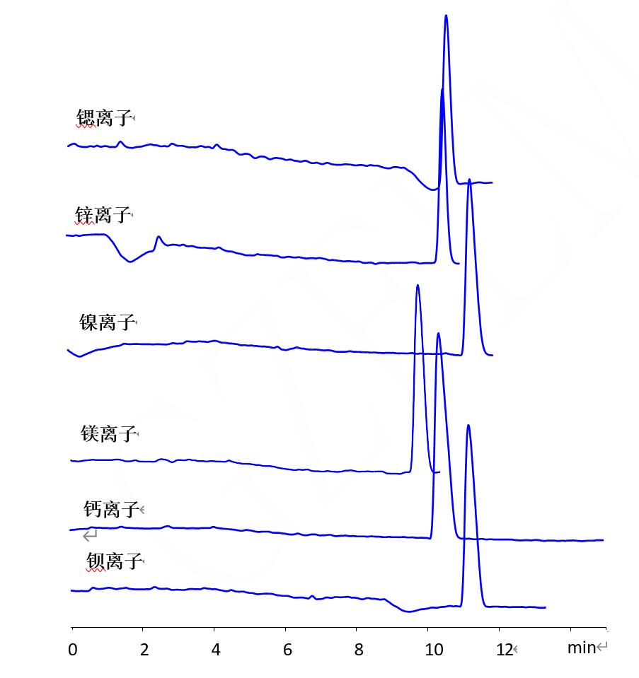 Comixsil RP-100 混合柱關于二價金屬離子的保留時間
