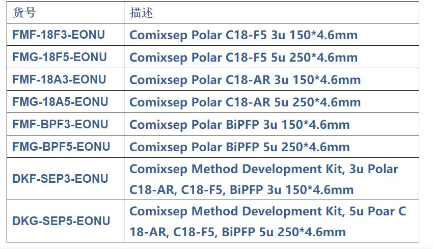 2021年,我們在混合作用(mixed-mode)固定相設計上繼續開疆拓土,開發出了Comixsep系列的三款多種作用力組合的反相固定相;