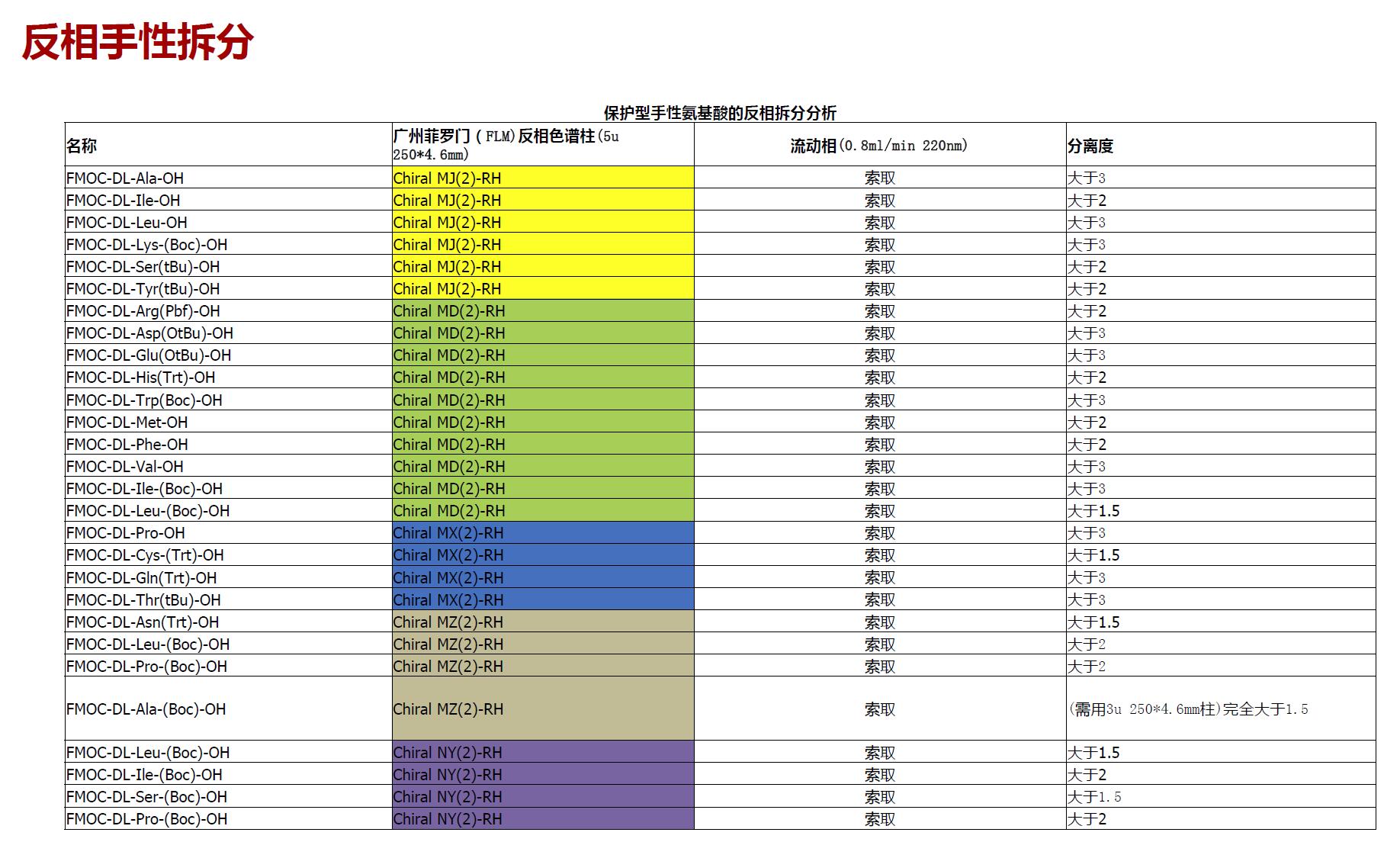 (2)、FMOC或BOC等保護型各類手性氨基酸的拆分