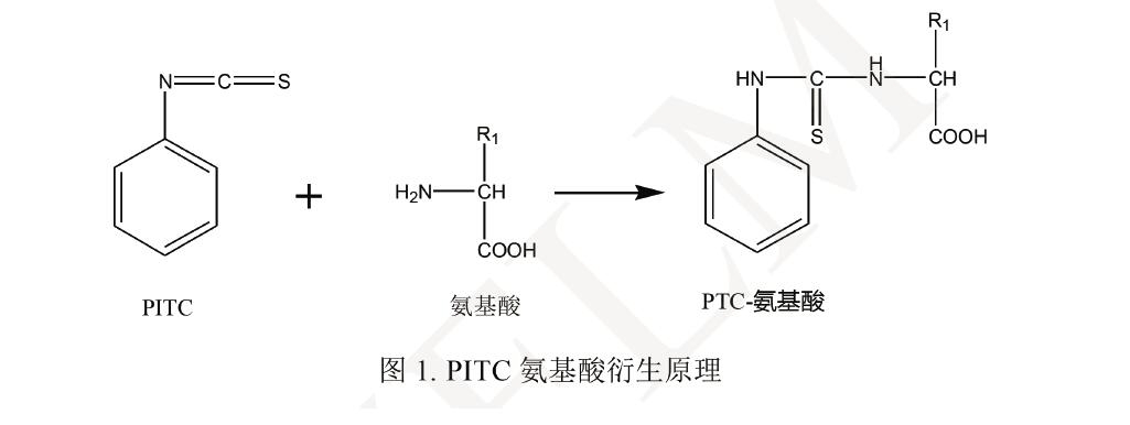 這種分析氨基酸的方法基于柱前衍生步驟,衍生化反應(yīng)是在堿性條件下完成的,采用異硫氰酸苯酯和游離氨基酸反應(yīng)生成的 PTC- 氨基酸衍生物可于 UV 254 nm 處被檢測到。