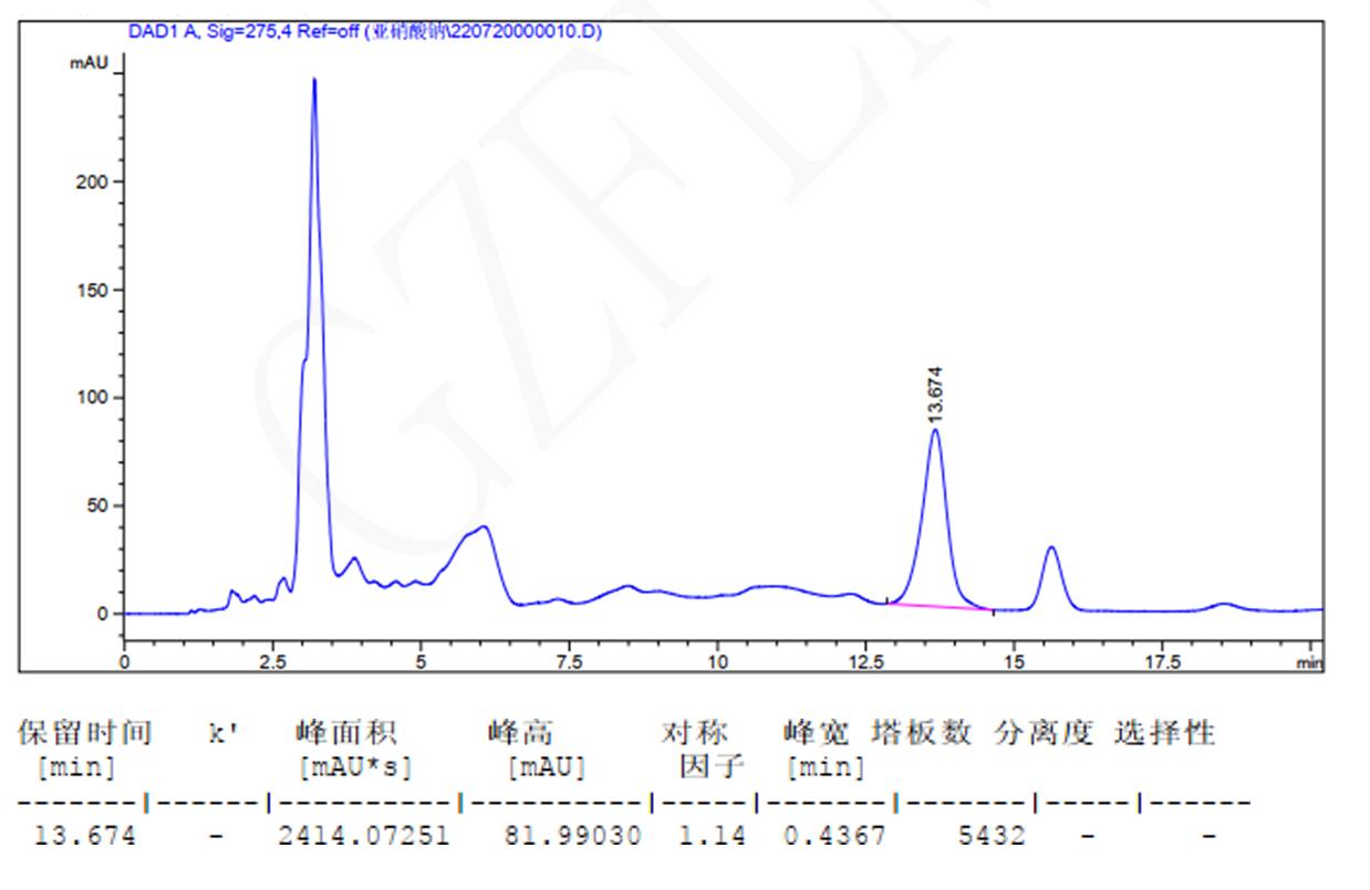 流動相:甲醇:水=15:85 流速:1ml/min