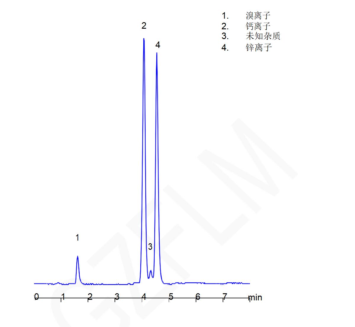 說明:若用此法測定鈣離子時,樣品中需避免存在氯離子,在Comixsil HAC固定相色譜柱中,鈣離子與氯離子將共洗脫。 如果是氯離子存在時的鈣離子的分析,可以采用Comixsil ACRP或Comixsil RP-100等其它固定相色譜柱進(jìn)行分析。