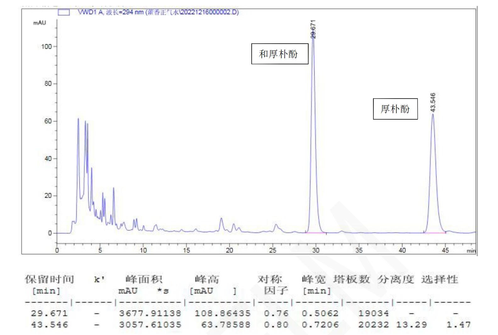 【厚樸測(cè)定】 理論塔板數(shù)按厚樸酚峰計(jì)算應(yīng)不低于 5000