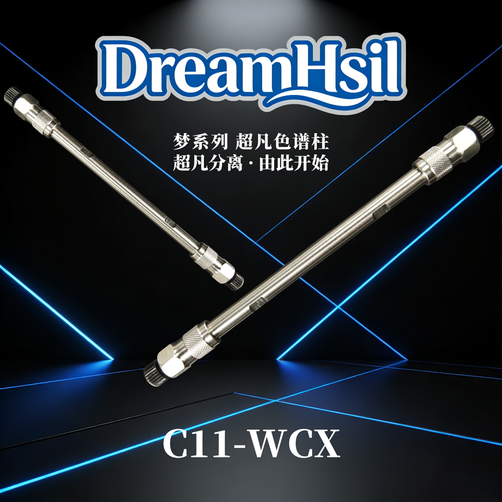 - DreamHsil C11-WCX 色譜柱 C11-WCX具有獨特的選擇性。采用獨特鍵合技術,將直鏈十一碳酸直接獨立的雙位點鍵合于Si-H 鍵上直接形成Si-C鍵的C11-WCX鍵合相。