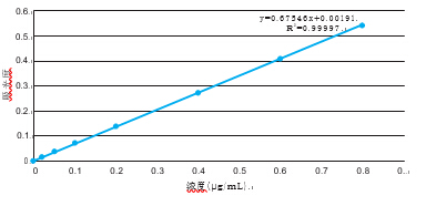 色,作為參比。以六價鉻濃度(1 μg/mL)作為X軸,以吸光度作為Y軸繪制標準曲線。(圖2)