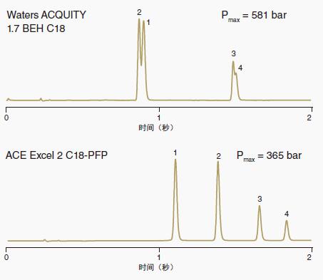C18-PFP鍵合相提供的額外分離機(jī)制,使得總體分離效果更佳出色。